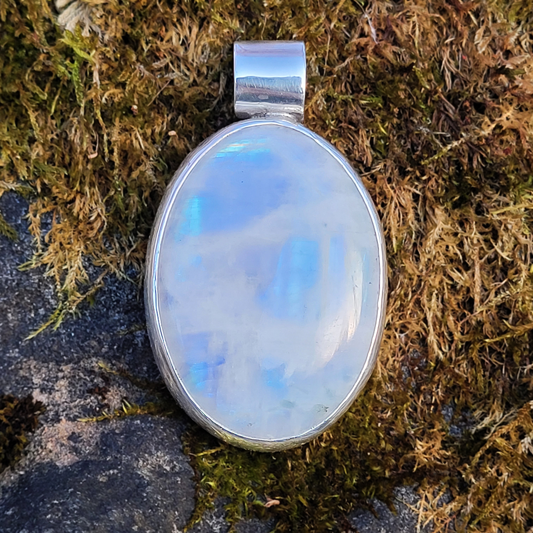 See ripats toob esile kuukivi salapärase ja elava helgi. Kivi pinnal mänglevad valguslaigud loovad pehme, justkui seestpoolt kumava efekti, milles vahelduvad hõbedased ja õrnalt sinakad toonid. Iga liigutus muudab selle sära – ehe, mis ei ole kunagi päris sama.
