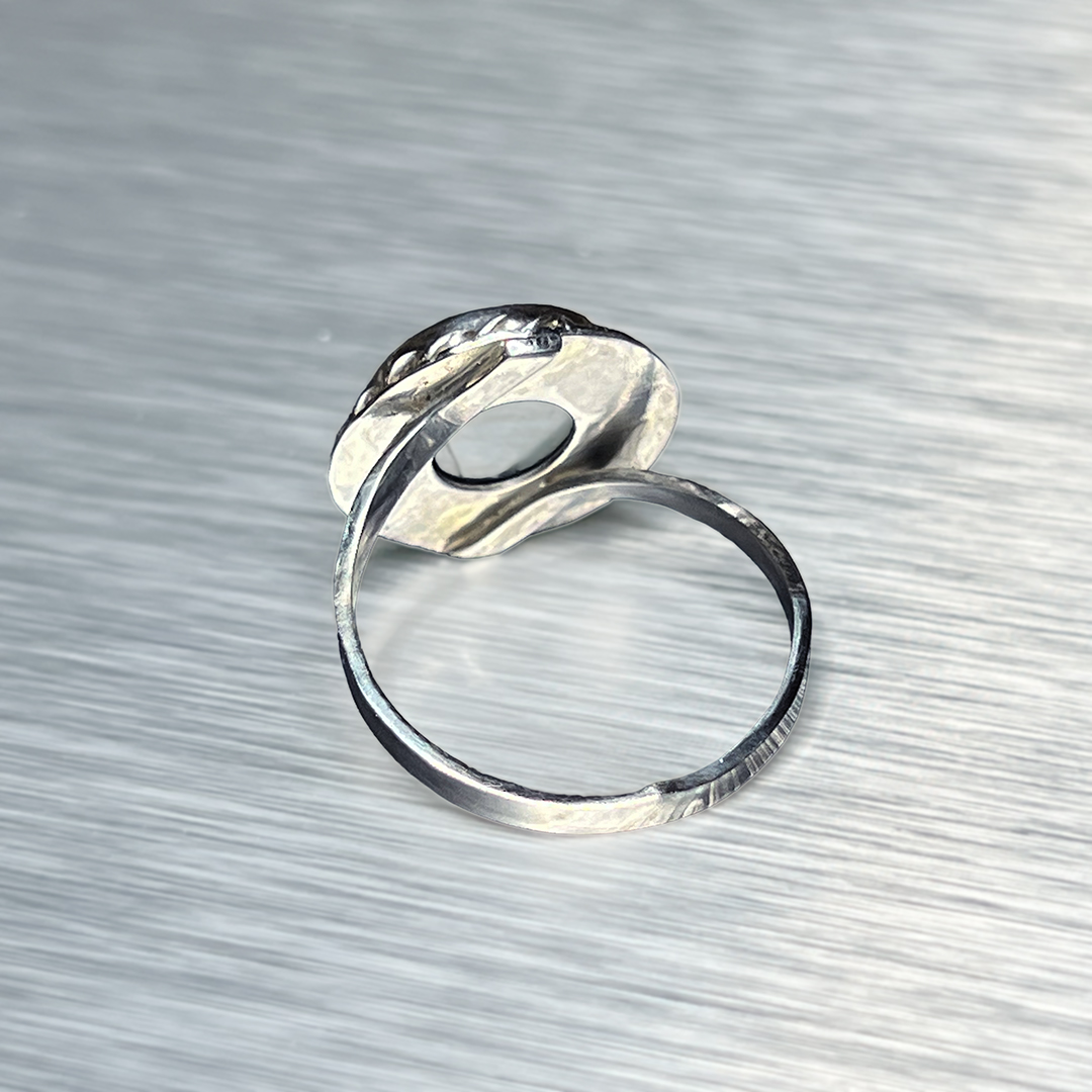 Hõbedast 925 valmistatud sõrmusel on sile poleeritud pind, mis toob esile kivi valgusemängu. Kivi raamiv tordeeritud ehk keerutraadist vits on tagasihoidlik viide Eesti traditsioonilisele ehtekultuurile, mis elab edasi kaasaegses vormis.