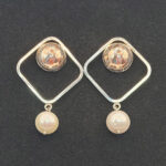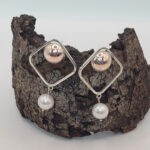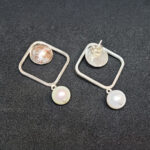 Õhulist ruudukujulist raamistikku tasakaalustab all rippuv mageveepärl, mis lisab ehtele pehmust ja liikumist. Kontrast metalli struktuurse mustri ja pärli sileda pinna vahel loob harmoonilise, kuid pilkupüüdva terviku.