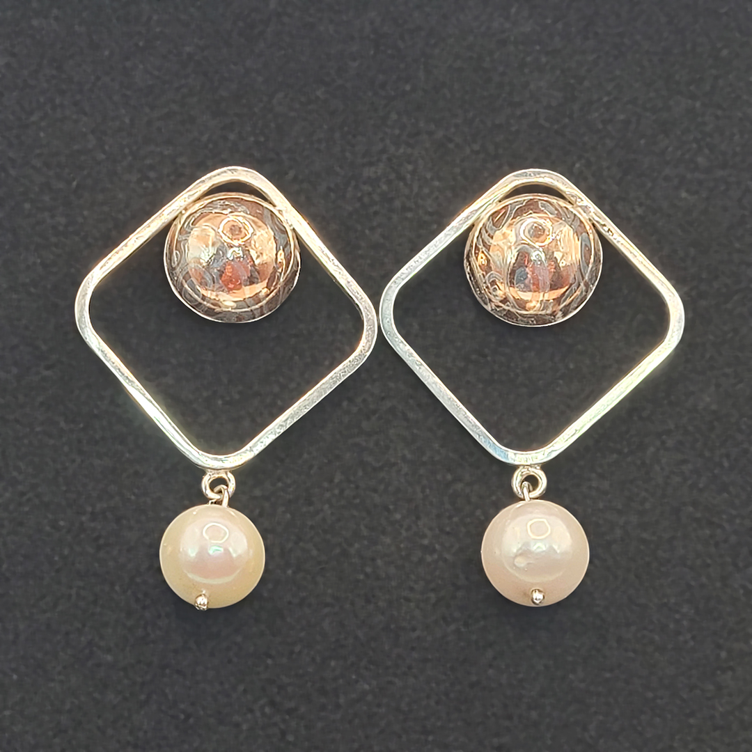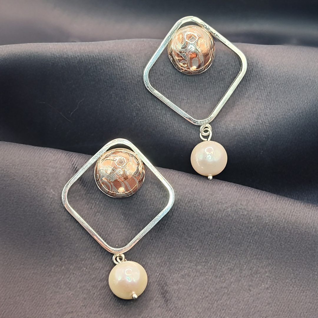 Mokume-gane kõrvarõngad mageveepärliga