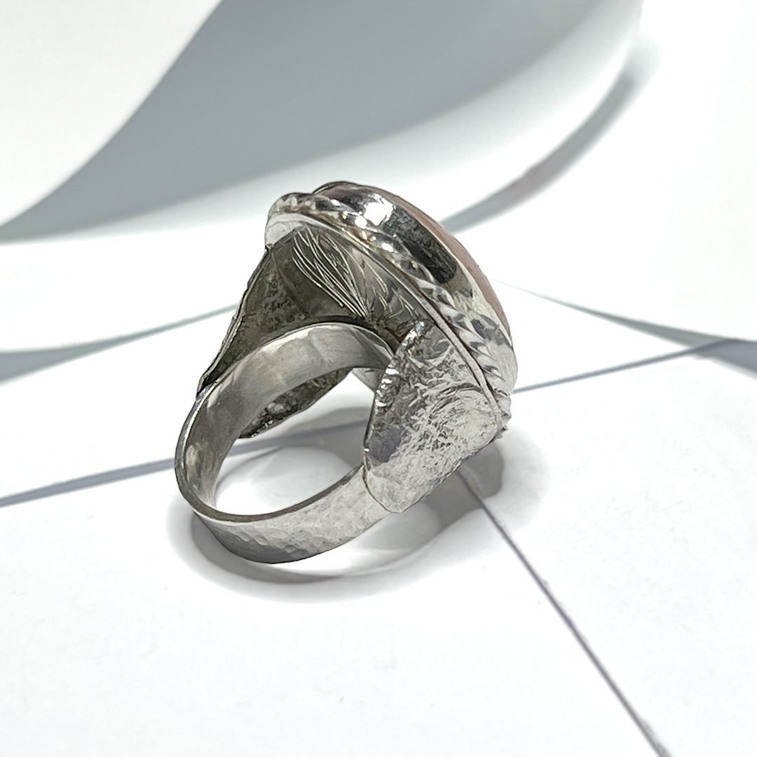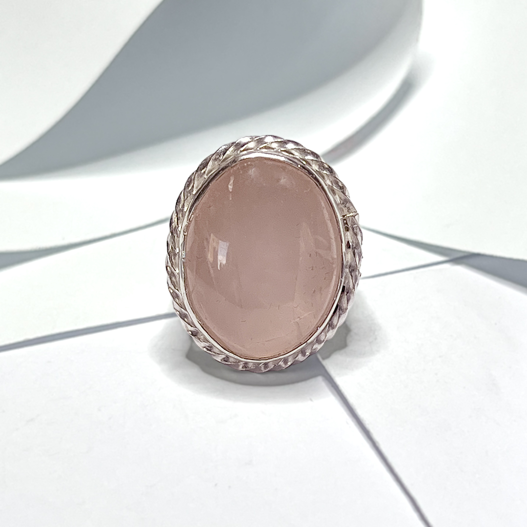 See käsitsi valmistatud sõrmus on justkui sisemise rahu ja avatud südame kehastus. Roosa kvarts kumab õrnalt nagu varahommikune uduvalgus – kivi loomulik pehmus ja läbikumavus loovad mulje sügavusest ja õrnusest.